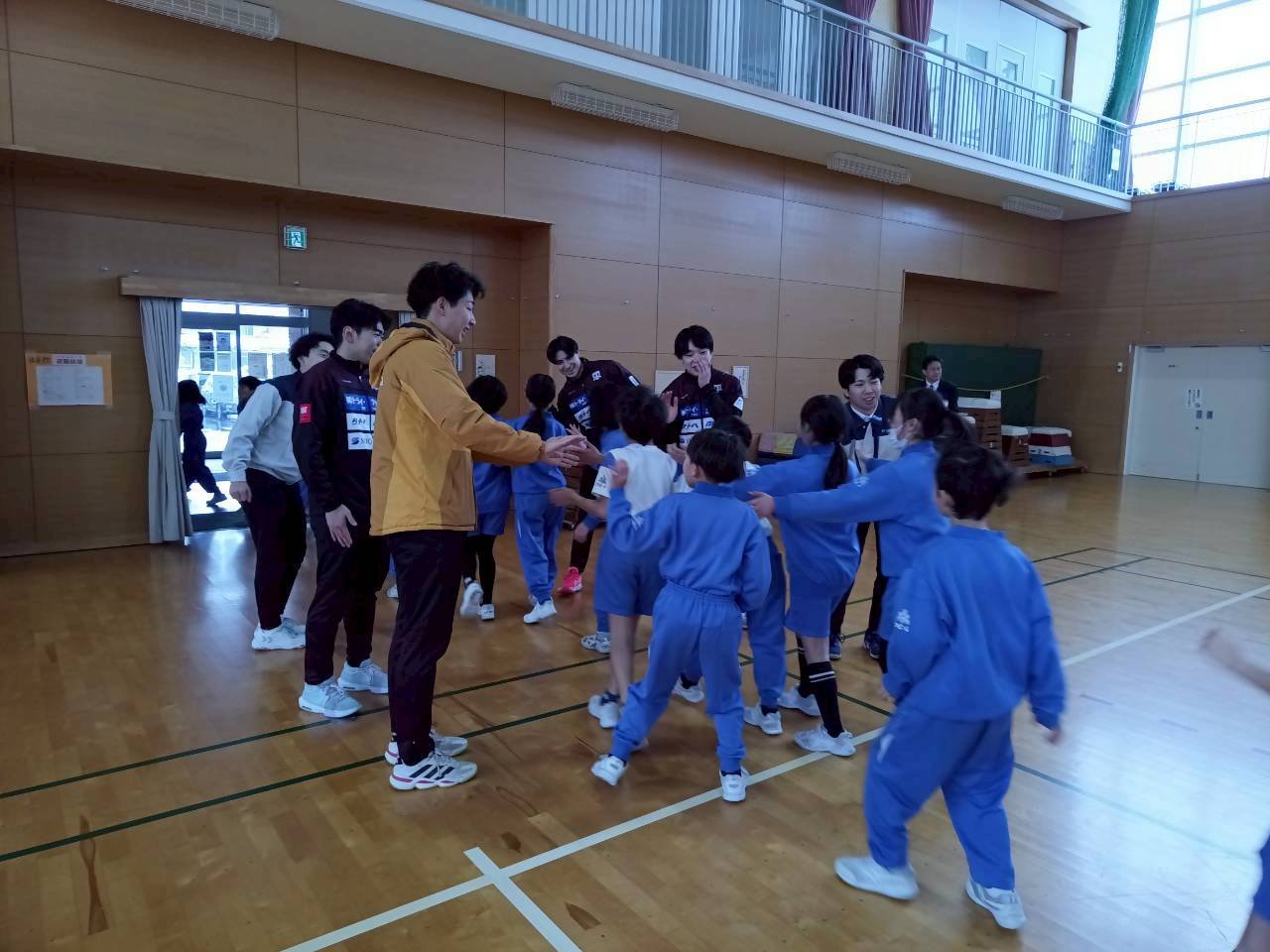 当日は、富山ドリームスの選手たちが参加し、児童のみなさんと一緒に身体を動かしながら、ハンドボールの楽しさを体験しました。