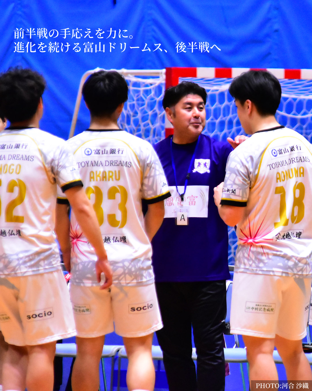 それに加え、富山ドリームスならではの見どころとして、攻撃時はサイド(No.5/北林誠⽣・No.15/松嶋徹・No.19/池間飛勇・No.46/庄司清志・No.52/高尾将吾)の動きに注目してください。きっと面白い展開が始まると思います。守備では3人のゴールキーパー(No.24/髙⽊アレキサンダー・No.45/衣笠友貴・No.71/野上遼真)それぞれの個性、そして守備から一気に展開される速攻にも注目です。」