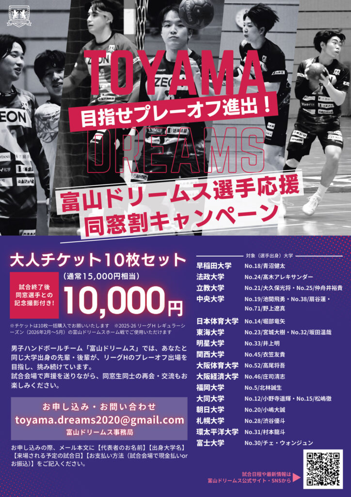 目指せプレーオフ進出!富山ドリームス選手応援同窓割キャンペーンとして、
