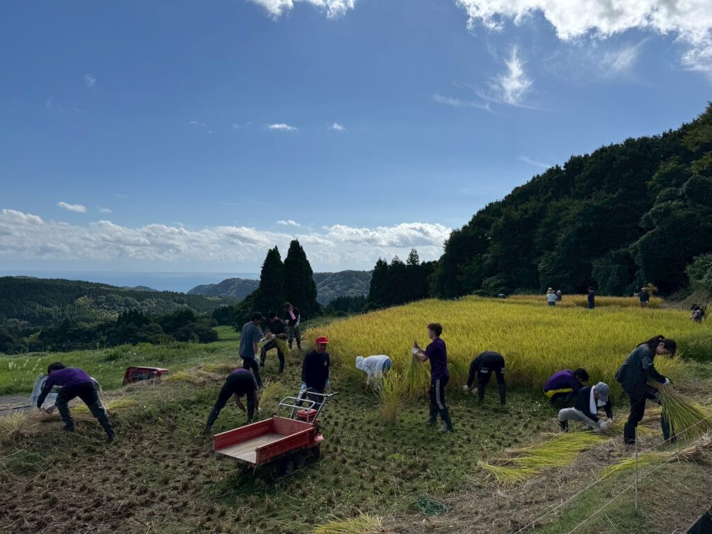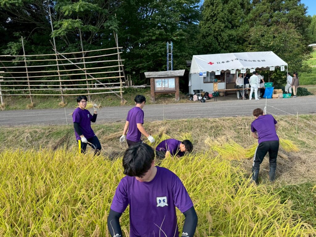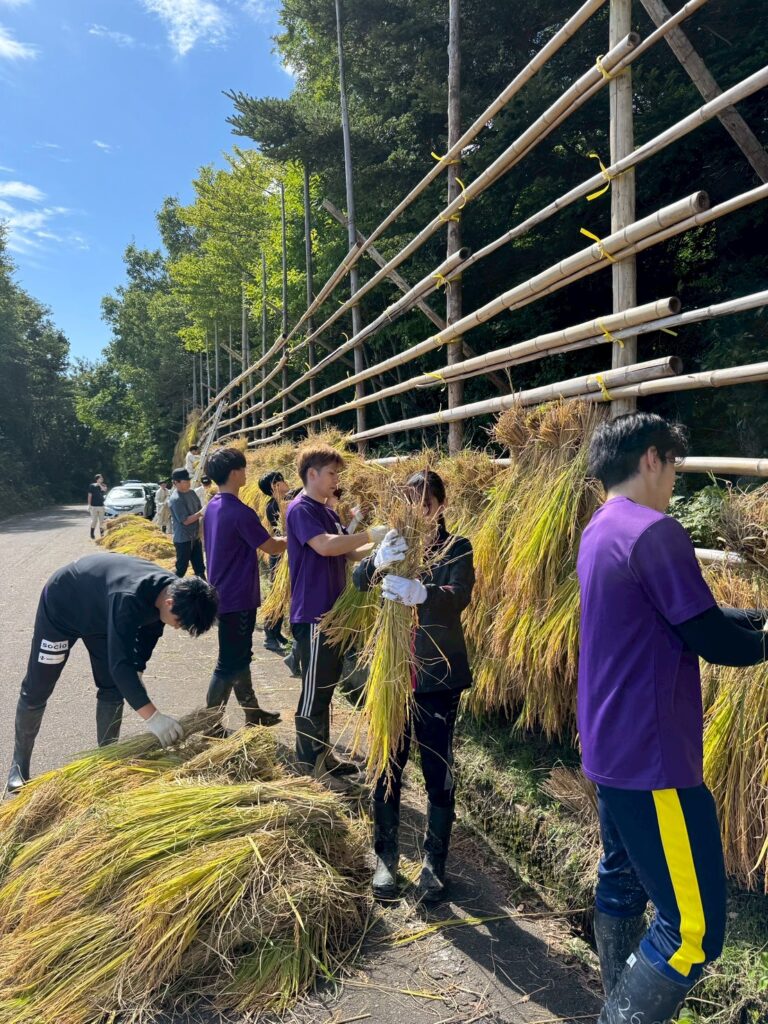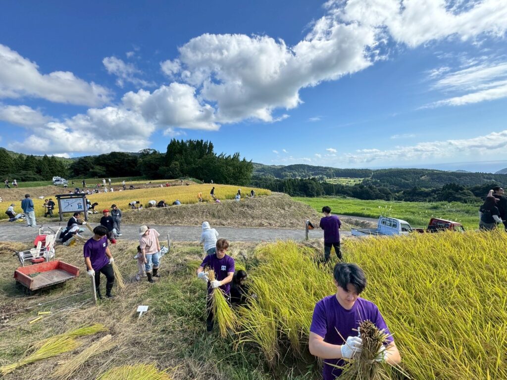 2025年9月27日、「日本の棚田百選」に選ばれている富山県氷見市長坂の棚田での稲刈りに、今年も富山ドリームスの選手が参加しました。