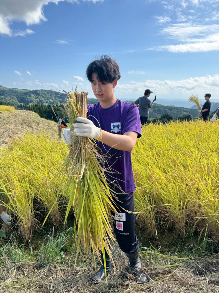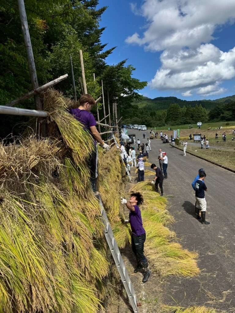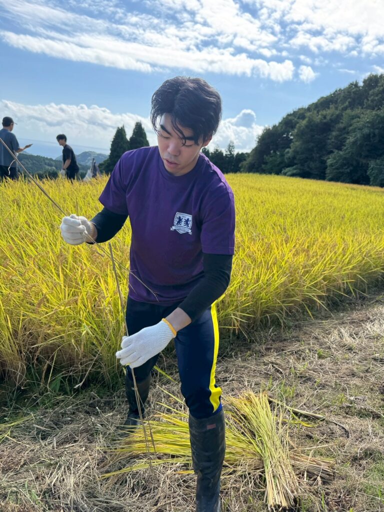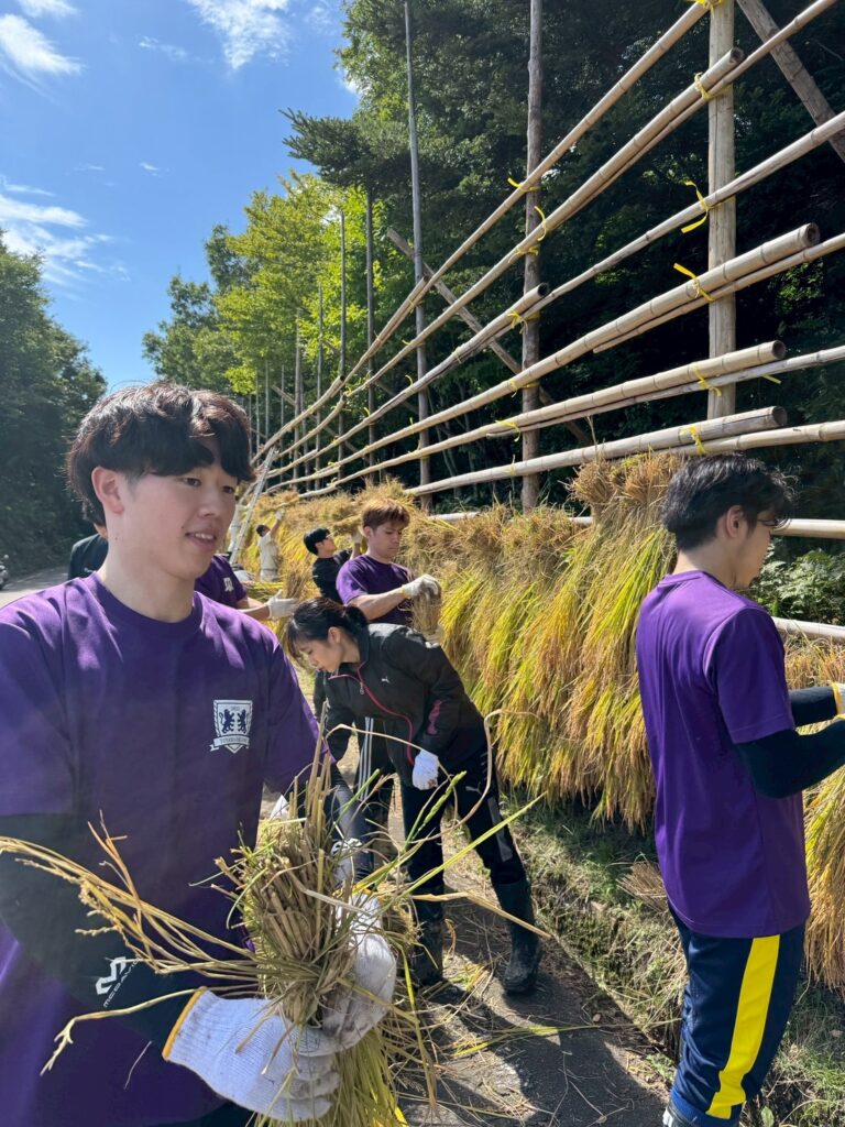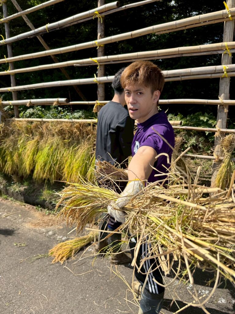 2025年9月27日、「日本の棚田百選」に選ばれている富山県氷見市長坂の棚田での稲刈りに、今年も富山ドリームスの選手が参加しました。