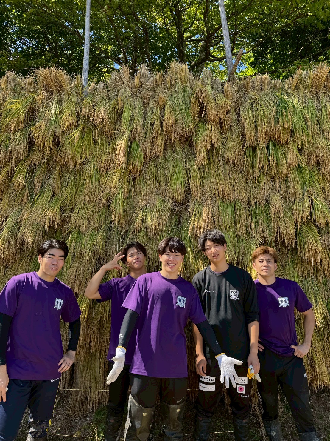 2025年9月27日、「日本の棚田百選」に選ばれている富山県氷見市長坂の棚田での稲刈りに、今年も富山ドリームスの選手が参加しました。