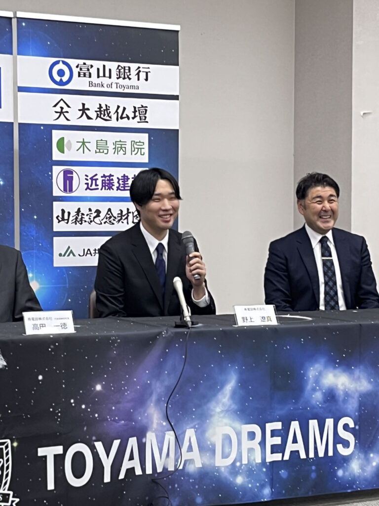 高田社長がおっしゃられたように笑顔が素敵で富山ドリームスのファンの皆さんや、また寿電設さんにたくさんの笑顔をお届けできるような、たくましい選手になってくれたらなという思いでいます。